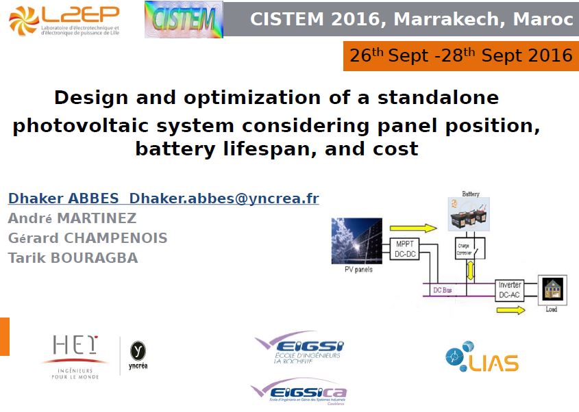KEYWORDS : Photovoltaic, design, multi-objective optimization, panel’s position, batteries’ lifespan.