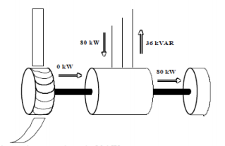 2- To compensate for the reactive power consumption of the entire system, the synchronous machine must provide to the grid a reactive power Q=36 kVAR.