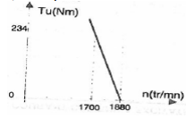 – un essai à vide pour lequel N0 = 1880 tr/min – un essai en charge : N=1700 tr/min et Cu = 234 N.m.