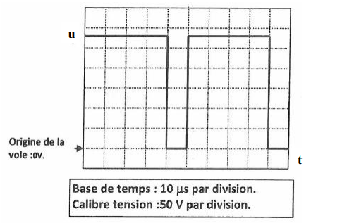 – la fréquence de la tension u ; – le rapport cyclique α ; – la valeur moyenne Umoy de la tension u.