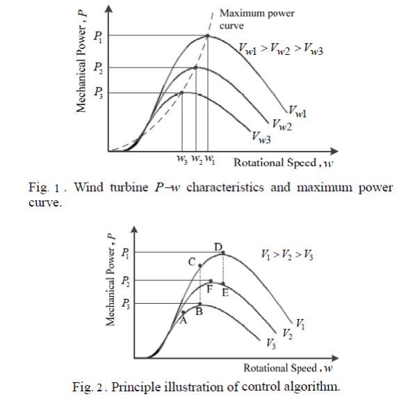 1) The basic principle of the Hill Climbing searching algorithm is : if the previous increment of rotational speed ∆w results in an increase of mechanical power ∆P, the search of ∆w continues in the same direction ; otherwise, the search reverses its direction.
